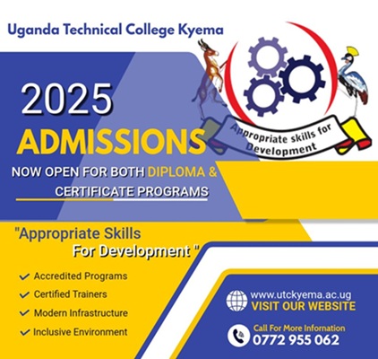 The Academic Registrar Uganda Technical College (UTC) Kyema announces vacancies for CERTIFICATE COURSES for the January/February 2025 intake and DIPLOMA COURSES for the August/ September 2025 intake for Private Sponsorship Only. COURSES Certificate Courses: National Certificate in Building Construction, Electrical Read more